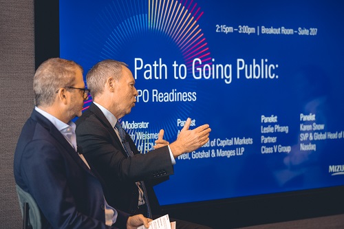 Lunch was followed by illuminating discussions from Mizuho bankers and external panelists on capital raising and M&A trends in public and private markets. Gregg Lemos-Stein, Chief Analytical Officer, Corporate Ratings at S&P Global Ratings shared his view on corporate credit outlook in an increasing interest rate environment. And, we had a focused private company track with insights from leading legal, investor relations, exchange and market experts on IPO Readiness and Life After Listing.