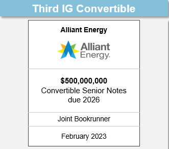 Mizuho has helped its clients navigate the current rising interest rate environment, serving as bookrunner on all 3 recent Investment Grade Convertible Bond Offerings from Utility Issuers