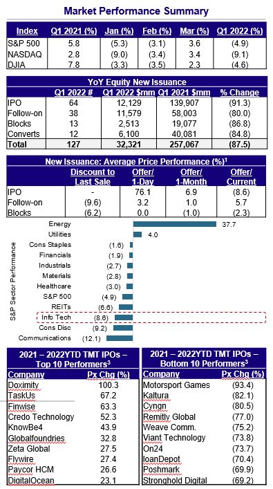 - As noted, Mizuho was a bookrunner on the only TMT IPO in Q1 2022 – Credo Technology, which raised $230mm in late January.