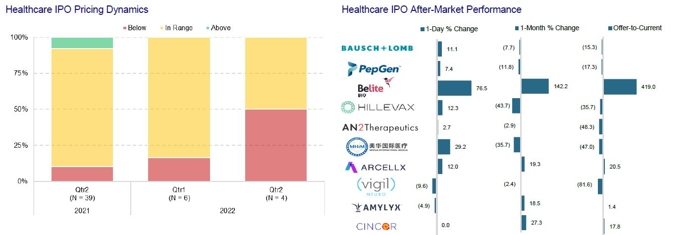 As Q2 comes to a close, I feel like we are finally in the acceptance stage as it pertains to the biotech tape. Acceptance allows us to take measure of where we are and to contemplate a path forward. So – where are we? The XBI has tested the low 60 levels twice. We are 65% off the high water mark. Bear in mind, when the genomics bubble burst in 2001, we dropped 75%. If you examine other biotech downturns, they tend to last about 7-30 months. We are currently in month 16. Almost 70% of SMID cap biotechs are now trading with market caps less than $200m. 25% of biotechs now trade with negative enterprise value.