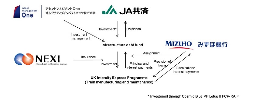 Under this investment scheme, MHBK transferred a portion of its loans it holds to the UK Intercity Express Programme to the Fund managed by AMOAI. NEXI provides Overseas Untied Loan Insurance to the Fund as the insured party, while Zenkyoren invests in the overseas infrastructure project through the Fund as the first investor in this investment scheme. Through its investment process, the Fund will take into account ESG criteria and strive to achieve SDGs by evaluating the impact of the investment.