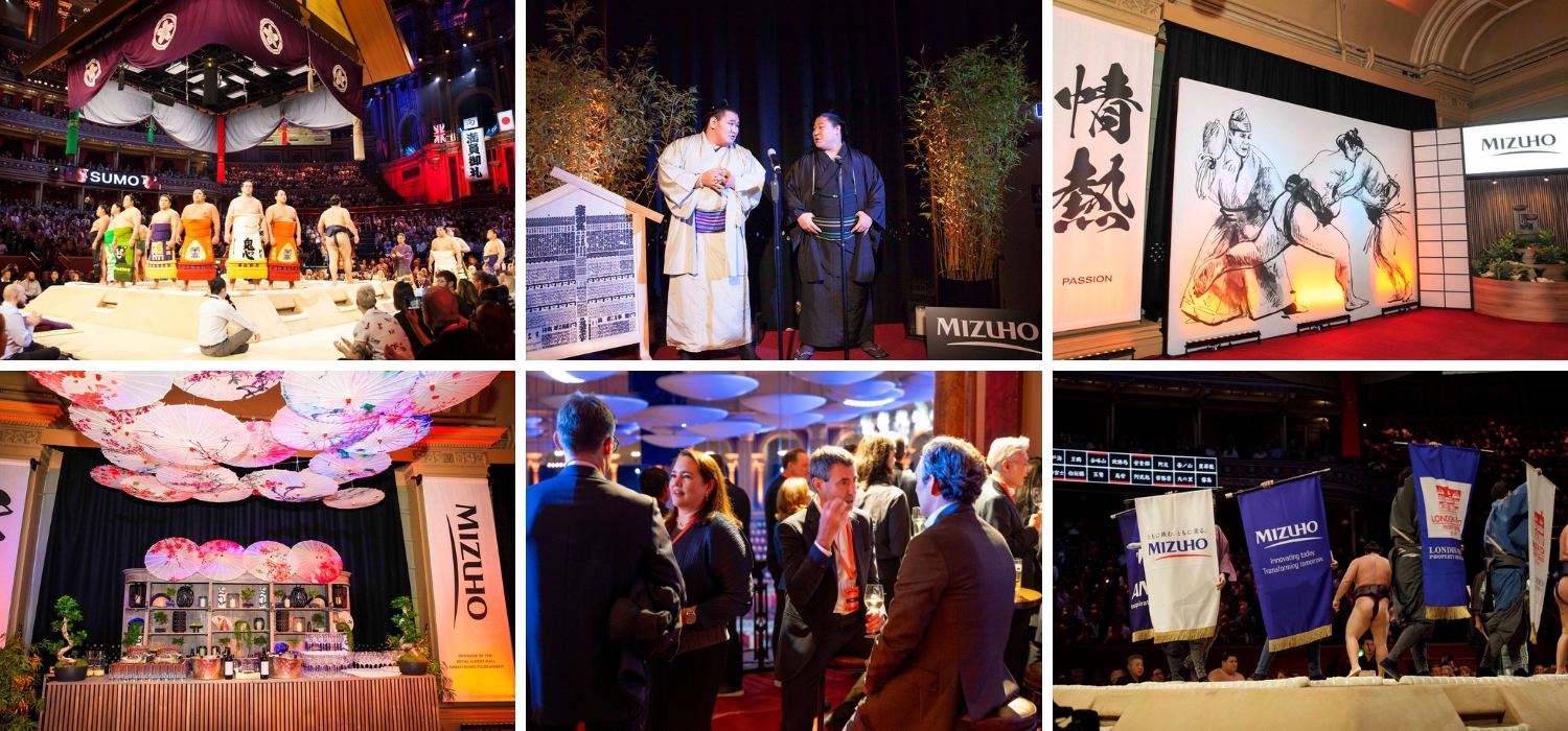Mizuho hosted a special client reception in a bespoke Mizuho-branded gallery space within the Hall. Over 180 guests joined us for an unforgettable evening, surrounded by elegant Japanese motifs and the electric atmosphere of live sumo.
