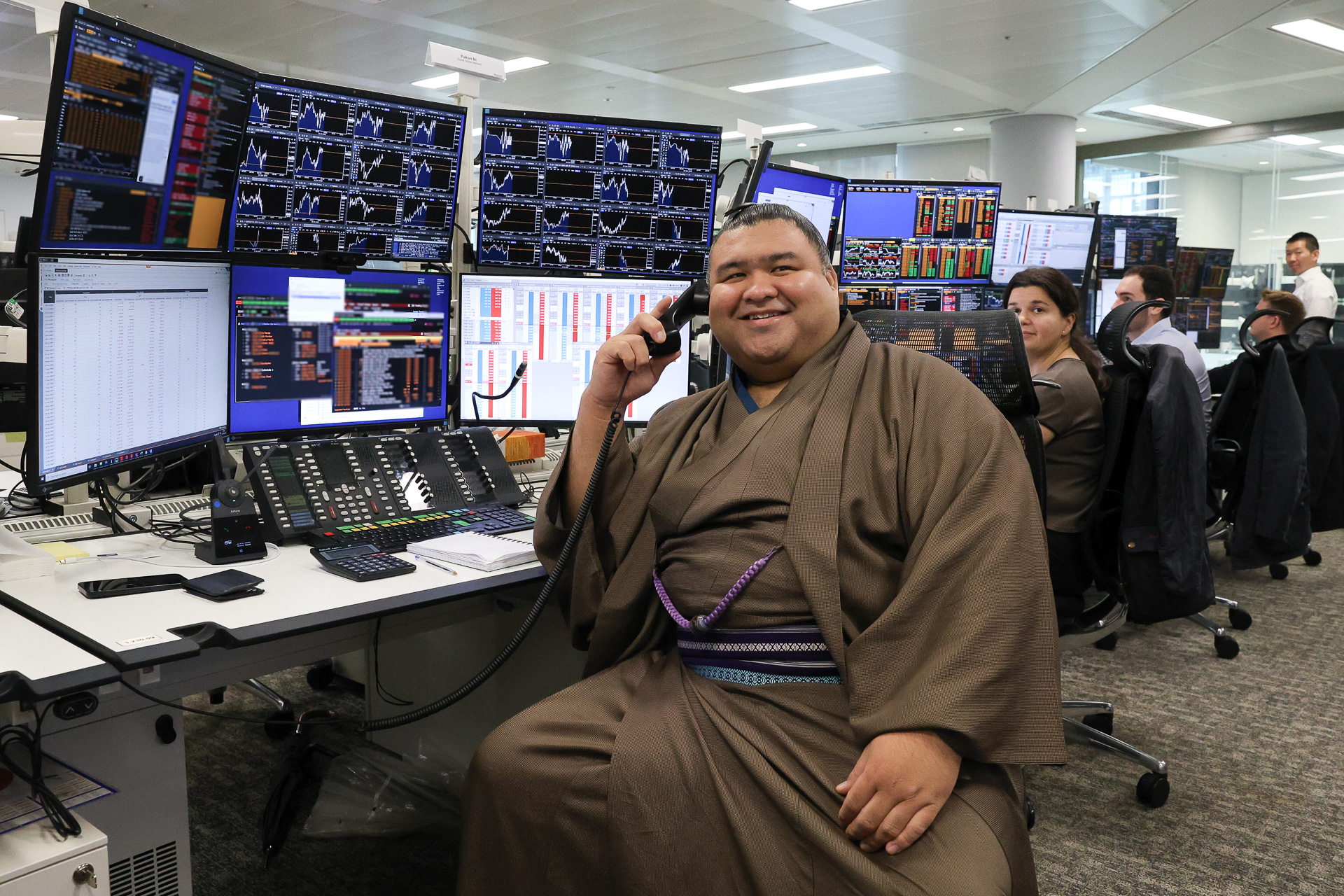 To commemorate the occasion, we had the honour of welcoming Akira Takayasu, winner of the Fighting Spirit award and one of the tournament’s standout rikishi, to our London office. During his visit, Takayasu-san explored our trading floor and joined a packed Q&A session, where he shared insights into the life of a professional sumo wrestler.