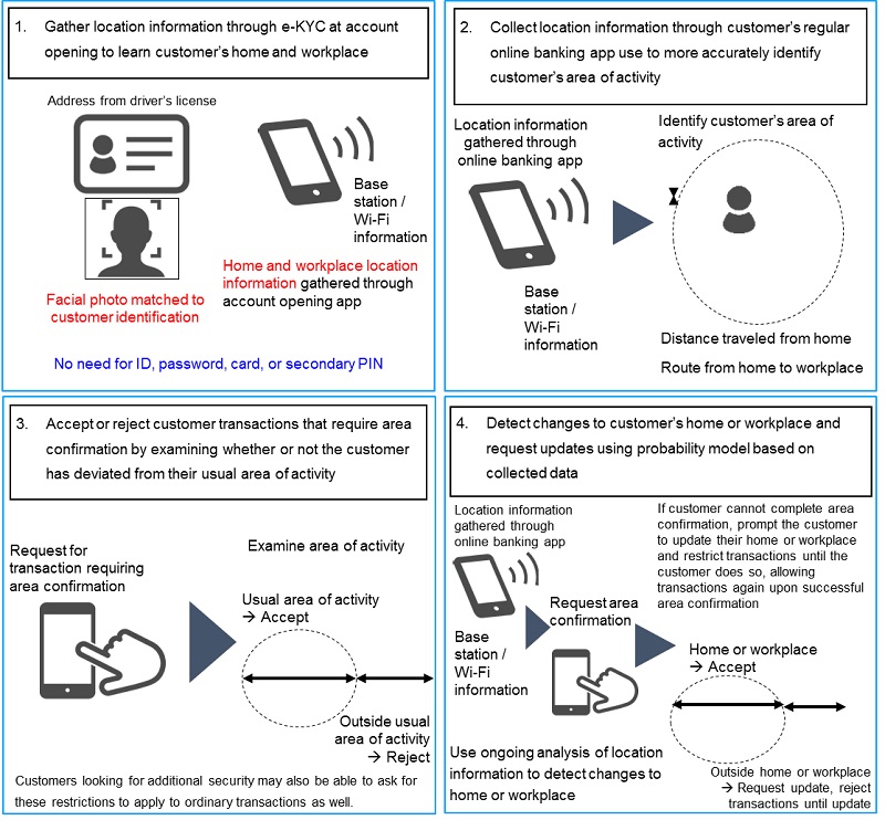 Against this backdrop, we are implementing the proof–of–concept trial to evaluate whether or not device location information and facial recognition technology can ensure security in online banking and, in the case of device location information, enhance CDD.