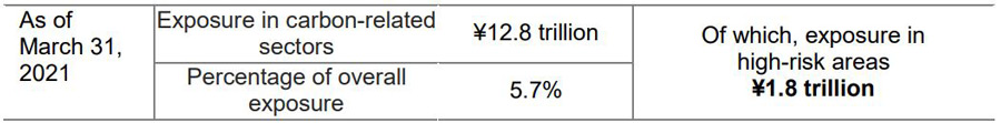In regard to high-risk areas, we are engaging with clients to encourage them to formulate effective strategies for transition risks, disclose their progress, and in some cases embark on business structure transformation towards a lower risk sector. In undertaking such engagement with our clients, if a client does not make progress on addressing their transition risks even after a certain period of time, we carefully consider our transactions with the client. In this way, we are enhancing our risk control and reducing our exposure in high-risk areas over the medium to long term.